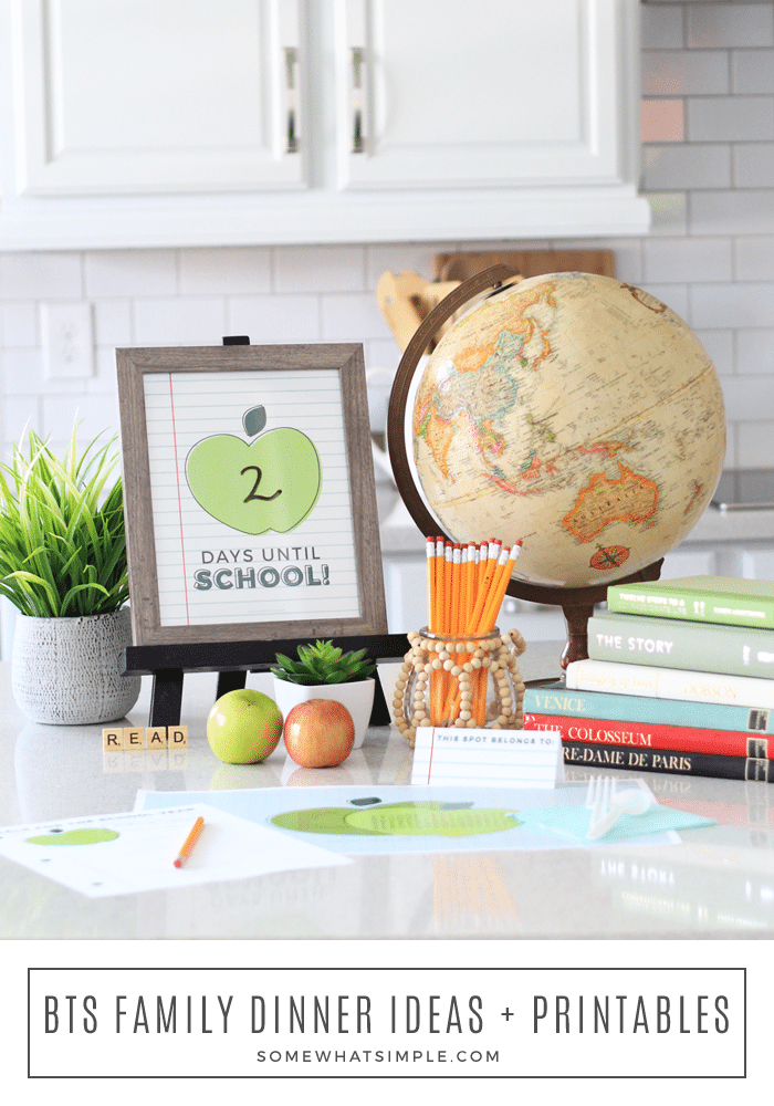 Every fall, just before the first day of school, we have a little Back to School Family Dinner. It’s nothing big or fancy, but it’s a fun tradition that gets the kids excited for their first day. We have a cafeteria-style dinner with some simple activities, and we end the night with a simple school-themed treat.